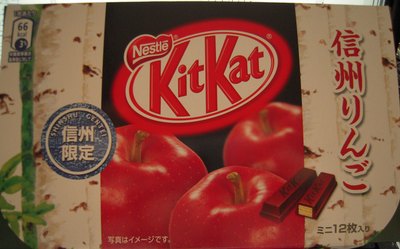 私買ったのは信州限定、信州リンゴのキットカット。リンゴの香りが程よく酸っぱくて美味でした。ところで、やっぱ青森にも限定青森リンゴキットカットってあるのかな。…信州リンゴと味違うのか気になるw