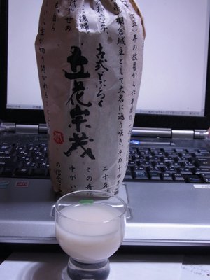 濁り酒だけど濃くはない。モロミがけっこう粒多い&荒いまま残っているけど口当たりは見た目よりもあっさりな感じ。度数の問題かな。割とするするいけて危険な趣です。美味しい。