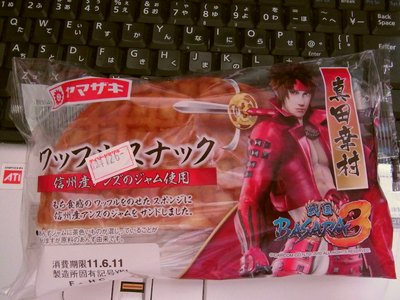 …ウチの近所にデイリーストアって無くて! 山崎パン置いてる店でもランチパックくらいしかないし! 職場の側(でも10分くらい歩く)のデイリーでやっと見つけたー。真田ワッフルスナック。しかしもっちりワッフル部分はぺらいの一枚だけでほとんどはカステラじゃんかよー。ちっとだまされた気分ですよ…。そして甘い! さすが幸村、容赦ない甘さです。カステラのジャムサンドでワッフルとカステラの間には生クリーム。濃いめに入れたお茶とかお供にほしいところです。