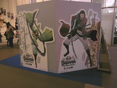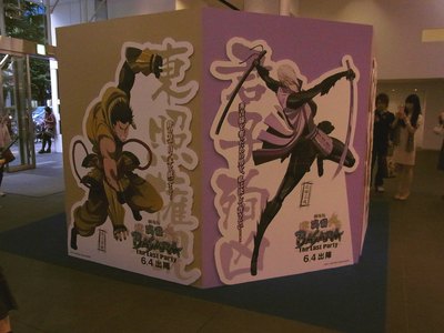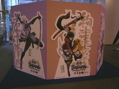 入り口にメインキャラの看板貼った8角柱が! ナリ様もあらぶっていらっしゃるw ぐるっと一周して写真撮ったのは言うまでもなくw 階段脇にもいろいろと今までのイラストとか展示してありましたー。…瀬戸内無かったけどな。