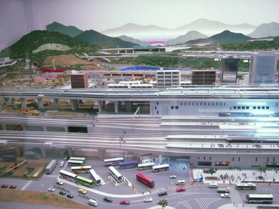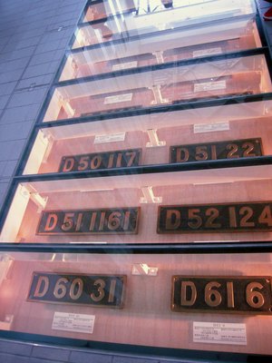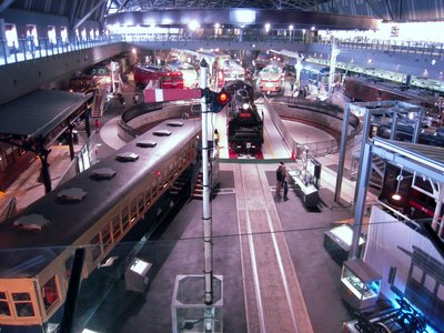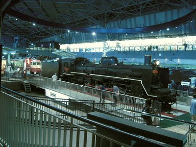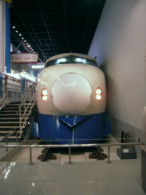 0系の丸いかわいさを堪能したら、二階に上がって日本の鉄道史展示コーナーへ。機関車のプレートとか特急のエンブレムとか昔の切符とか(改札が人力だった頃は駅ごとにはさみの切れ込みの形が違ったりしたんだよねー! 懐かしい!)ポスターとかをガラスケースに展示、情報の壁の方に年表パネルを展示。ガラスケースの中を新幹線の模型が行ったり来たりしてるのがかわゆい。