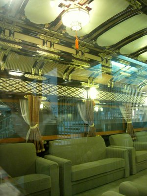 御料列車。内装が豪華ー! ほかにも撮ったんだけどガラスの映り込みが…orz ただ、写り込みで上手いこと「御霊になって乗ってます☆」的な写真撮るのも楽しいかもしれませんw …いらんか(;´∀`)