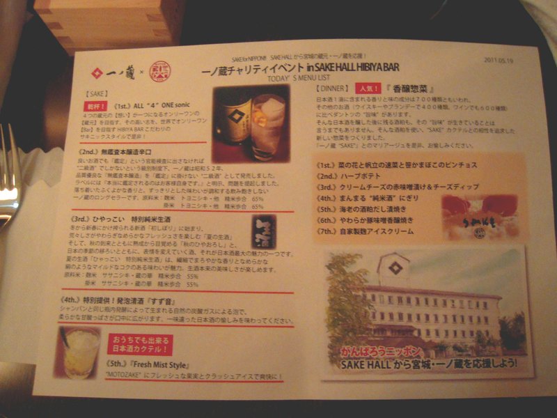 企画の時間はここでおしまいで後は銘々帰るなり飲み直すなり、という流れ。入り口のあたりが関係者名刺交換会やら、おトイレ順番待ちやらで詰まっていたので、「これで今日が金曜だったら…!」とぎりぎり歯がみしつつ「ひゃっこい」をもう一杯頼んでちびちび飲んでおりました。そのときにメニューくださいってお店の人だと思って声かけたのが一の蔵の営業の人だったらしくw; ちょっとお話してきました。笑って営業トークしててもいろいろ大変だと思うのでがんばってください…!