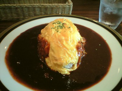 というわけで「カレーとハヤシの2色オムライス」。ケータイのショボ写真だとわかりづらいですがオムライスを境に左右にハヤシとカレーが半々ずつになってます。ちなみに左がハヤシで右がカレー。中辛くらいのピリッとしたカレーとあまいハヤシでメリハリあってなかなか面白い味わいです。ちなみにオムライスのご飯はフツーのプレーンな白いご飯。軽くいためてたりとかってこともなくフツーに炊いただけのお米でした(;・∀・) オムライスっていうとアレだけど、カレーに卵焼きがついてるだけという趣。まあこれでご飯に味ついてるとカレー&ハヤシの味がにごるとかそういうことなのかもしれんね。個人的には塩味くらいあっても良かったと思うけど。