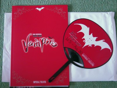で、テンション高く向かった帝劇はロビーから天井に蝙蝠が飛び回り、タイトルロゴのタペストリが垂れ下がり、キャストの扮装写真が肖像画風に柱にかかっているという頑張りぶり。舞台セットの模型も展示してあって、まったくカメラ持ってかなかったのが悔しいったら悔しい! 携帯の電池も切れてたしさー。 グッズもなんか増えてるし。リー君のぬいぐるみ(公式ブログの蝙蝠キャラ)ストラップとか…調子に乗ってるな東宝…。うっかり買いそうになったけどw