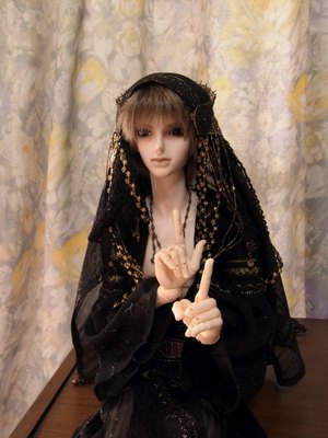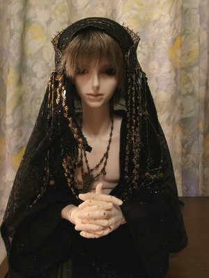とりあえずアイも手首足首も外れた状態で届いたので、早速組み立てて、先に届いてたので別の子に着せてたベール衣装もかっぱいで着せてみました。どーでもいいけど17少年よりか手が小さいのね。